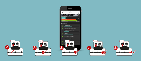 4. Auf dem Nach-Hause-Weg. Dein Fahrschüler verwendet die Chronik, zieht seine Bewertungen nach und reflektiert so nochmals die Fahrstunde.